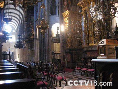 11世纪时在圣地牙哥建造的圣地亚哥大教堂,祭祀着基督的12门徒之一的雅各。12世纪左右他被推崇为基教国家西班牙的守护圣人。因朝圣者勇来而鼎盛。侧面回廊是可以沿着圣地亚哥大教堂内走一圈的朝圣路线型式。在地下祭坛中安置着雅各的遗体。