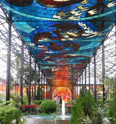 这座由墨西哥著名设计师莱奥波尔多·弗洛雷斯设计的植物园目前是世界上最大的彩色玻璃镶嵌钢架结构式建筑,