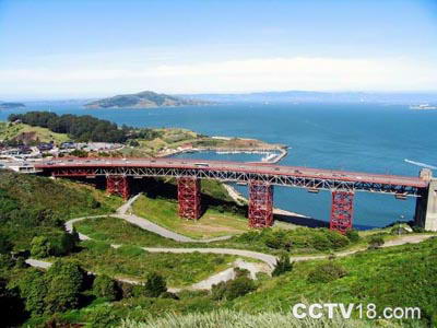 金门大桥(Golden Gate Bridge)是1937年开通的,全长约2.7km,高227m,是世界上最壮观的大桥之一,被视为旧金山的象征。在淘金热的时候,这座桥是如同是通往金矿的一扇大门,因此被命名为“金门大桥”。