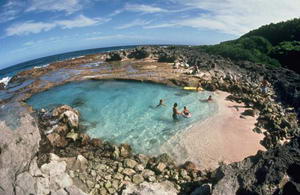 天然游泳洞(Swimming Hole)位于罗塔岛的北边,是由一圈珊瑚礁围绕成的天然海水浴场。聚集了缤纷的热带鱼群,海流稳定,清澈晶莹,脚底下是软软的细砂,是浮潜的最佳地点。不论是对当地人或是观光客来说,都是人气指数颇高的旅游点。