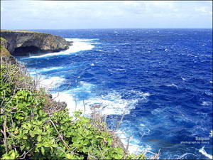 蓝洞(The Grotto)在塞班岛的东北角,是塞班最著名、难度高的潜水地点,这里常可看到潜客们在此练习下水。东北角的地质是珊瑚礁形成的石灰岩,蓝洞最神奇之处,就是石灰岩经过海水长期侵蚀、崩塌,形成一个深洞,水深达到17公尺,最深处达到47公尺,蓝洞与外海有3条相连的水道,光线从外海透过水道打进洞里,蓝洞水池内能透出淡蓝色的光泽,相当美丽。