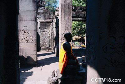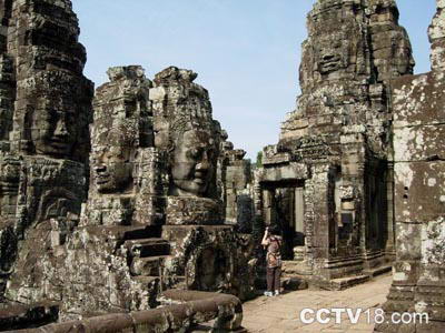 这49座佛塔顶都刻有巨大的四面佛,四个面分别代表慈、悲、喜、舍。佛像脸带安详的微笑,微微上翘的嘴角有几分宽容,又似乎有几分嘲讽,仿佛心中藏着什么世人永远无法了解的秘密,这就是令吴哥窟蜚声世界的“吴哥的微笑”。穿行在众多佛塔间,无论身处任何一个角落,都会发现有带笑的眼睛注视着你的一举一动。