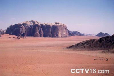 T.E.劳伦斯形容瓦迪拉姆沙漠:浩大,一望无际,似神殿般的广阔。约旦南部的瓦迪拉姆沙漠是他曾经纵横驰骋的地方,也是电影《阿拉伯的劳伦斯》的主要外景地。瓦迪拉姆是约旦最壮观的沙漠景观,又被称作“月亮谷”,因为它像月球表面一样宁静沉寂。这里是典型的纯沙沙漠,风化的巨大岩石如同城堡,为平缓的线条增加了跳跃的变化。