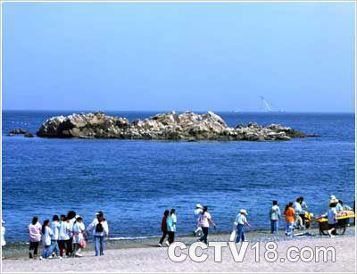 从庆州乘坐开往奉吉里海水浴场的汽车约50多分钟,便来到东海。眺望东海蔚蓝的海水,可以看见离海边不远的地方有一个小而美丽的石岛。
