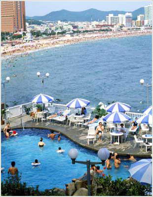海云台海水浴场是韩国最有名的海洋休养地。新罗时期(BC57-AD935)的学者崔致远(857-?)先生在山茶岛附近散步时,感慨于这里的美丽景色,就在山茶岛上的一块岩石上刻下了海云台三个字,于是就有了海云台这一名字。