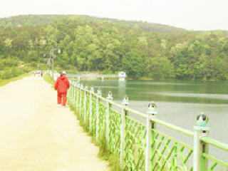光桥山前是光桥水库,沿水库有一条1.9公里的漫步道,适合恋人游览。