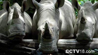 从中国四川来的大熊猫“安安”和“新兴”被安置在“稀有动物展览馆”内。