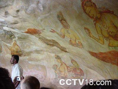 锡吉里亚古宫位于斯里兰卡中部锡吉里亚峰上,距首都科伦坡约160公里,是斯里兰卡著名古城堡遗址。锡吉里亚山峰平地突起,海拔349米,远眺顶峰,恰似葱绿的山林簇拥起一块巨石。公元5世纪,斯里兰卡孔雀王朝的迦叶波王子弑父篡位后,惧怕逃亡印度的弟弟目犍连回来复仇,离开了首都阿努拉达普拉,迁到锡吉里亚峰上,立王宫,建帝都。迦叶波国王为了把这座山峰建成固若金汤的辉煌王宫,费尽心机。但是18年后,他还是战死在目犍连手下。此后锡吉里亚古宫被遗弃了,直到1894年才被欧洲的一位考古学家重新发现。1948年斯里兰卡独立以后,政府拨款修建了登山游览的道路,向国内外开放。当年的锡吉里亚古宫,在方圆不过数英亩的峰顶上,宫殿凌空独立,似一头庞大的卧狮,故又有"狮子岩"之称。宫中有清凉殿,引流泉过地板之下以清暑;有王后御花园;有说法崖,设层层平台,供僧人说法用,崖周围有100座小壁龛环绕。宫中壁画数百幅,绘有迦叶波一世的嫔妃、天女等、飞天散花,形态绝美。在锡吉里亚山腰上用砖石砌了一只巨大的狮子坐像,作镇妖之用,今只剩两只一两米左右大小的前爪。从山脚到山腰建造了一条漫长的走廊,山腰西面环山长廊直通绘有彩色壁画的石壁。为了保护珍贵的壁画和游客的安全,政府还特制了一个巨大的铁丝网,罩在石壁上面。据说1500多年前,涂有石灰浆的石壁上曾绘有数百帧天女画像,由于沧桑巨变,现仅剩下21帧了。壁画上的天女们上身裸露,肤色金黄,陪衬着闪光的头饰,有的手执花盘和花朵,有的正在散花。这些壁画虽已历经千余年,但其色彩仍鲜丽如初。天女画像两边的石壁上,保留着一些粗刻文字诗歌,总数达685首,出于古代斯里兰卡国王、将军、僧侣、文人和信徒之手,是研究公元5世纪前后斯里兰卡社会、文化和宗教的珍贵资料。