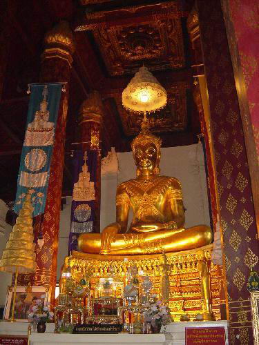 大雄宝殿的佛像高6公尺,宽4.4公尺,穿着皇帝的衣服,是泰国同一类型佛像中最大的,而它的名字“PhraPuttha-Nimit-Wichit-Marnmolee-Shisanphet-Borommatri-Lokkanat”也长得令人印象深刻。