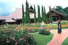行宫外的花园里种植着泰北特有的植物树种,一年四季,绿草如席,繁花似锦。