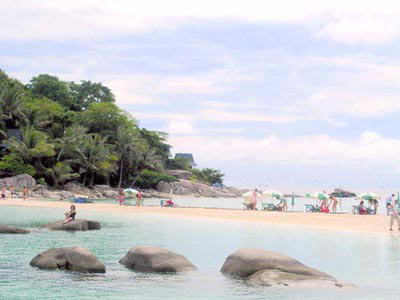 一旁的湄南码头(Maenam Pier)是去乌龟岛(Kho Tao)和对面帕岸岛(Kho Phangan)发船处,出发的时间在早上7点到10点之间,船只回港则是在下午4点左右,因此 有一段空档时间,整个海滩显得非常安静。不过,海滩上没有洋伞或躺椅等戏水设备,来玩的游客记得要自备大毛巾及洋伞。