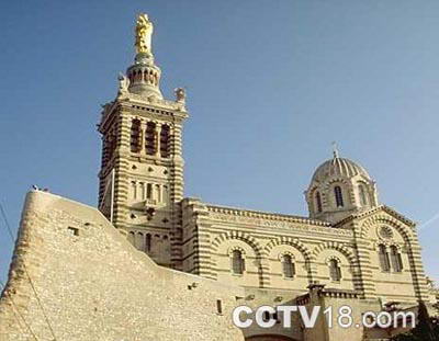 在这里的海滨广场,您可欣赏马赛最壮观宏伟的一面。从大门进入,首先是僧侣的宿舍,里面约有30名僧侣。这些僧侣终身都在此修行,每天凌晨2点即展开第一次的祈祷,下午又回到宿舍进行晚祷,从东边的阶梯走下去进入教堂内,里面有许多祈祷航海平安的模型船,墙壁上还留存着第二次世界大战时期,德军与联军交火的枪弹痕迹。