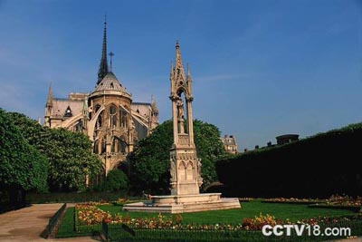 从圣母院塔上可观赏到塞纳河(LaSeine)上的风光及庞比度假中心。星期天晚上圣母院内不时有风琴演奏。