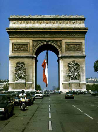 大凯旋门是为纪念法国军队的光荣和胜利而建造的,其规模超过了罗马的君士坦丁凯旋门。它位于戴高乐广场中央,建成于1836年,是古老巴黎的象征。它只有一个拱门,高50米,宽45米,长22米。门的每一面上都有一幅巨幅浮雕,内容取材于1792—1815年的法国战争史。