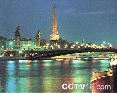 塞纳河上的36座桥是巴黎不可分割的一部分,它们和其他的名胜一样,为巴黎的美丽做着一份贡献:阿列山大三世桥Pont AlexandreIII大桥建于1896年至1900年,是为了庆祝俄国和法国建立同盟关系,长107米,宽40米,大桥将两岸的香榭丽舍与巴黎荣军院广场连结起来。