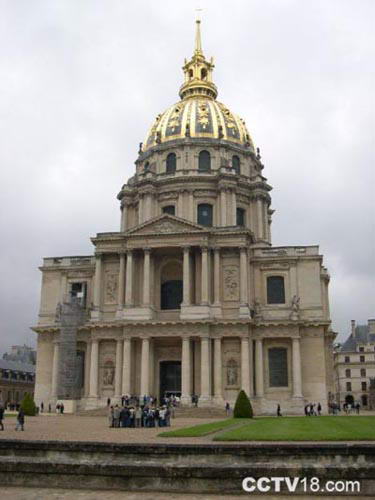 巴黎荣军院高110米,是路易十四在1676年建成的,原为法兰西军事学院的一部分,现在为法国军事展览馆。