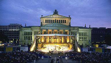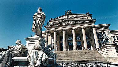 Gendamenmarkt在“权力基因”的遗传下,在士兵国王弗里德里希·威廉一世的统治下,这个广场赫赫有名。在威廉一世时代,马厩围绕着军队的方阵。剧院(Schouspielhaus)是德国最重要的古典剧团的中心,1818年到1821年在卡尔·弗里德里希·申克尔设计下,建于被烧毁的朗汉设计的国家剧院基墙上,山墙壁的塑像由克里斯蒂安·弗里德里·蒂克设计。