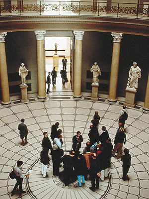 建筑物本身反映了申克尔把柏林建成“施普雷河上的雅典”的理念。他没有满足于建筑物外表庞大的气势,而是出乎意料地把它内部的中心建成一个圆形大厅,并排以众神像——显然是受到罗马万神殿的影响。