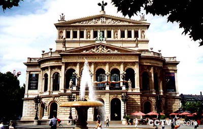 老歌剧院(Alte Oper)是法兰克福最著名的建筑之一,法国巴黎歌剧院的复制品,1880年建成,开演当年威廉一世皇帝观看了首场演出之后,大为感动,宣布说唯有法兰克福能继承如此金碧辉煌。