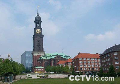 米歇尔(Michaelis)教堂坐落在市政厅以西、易北河北岸不远的高丘上。始建于17世纪,高132米,整个钟塔是铜绿色,是德国北部最重要的巴洛克风格教堂,米歇尔教堂的尖塔是汉堡市的标志。教堂内部共可容纳3000人,装饰十分精美,平面略成花瓣十字形,色调以明快的白色为主,祭坛和花萼形布道坛都是意大利风格的大理石建筑。由四根大柱支撑,四周有楼厢。堂内有三架管风琴,经常举行各种音乐会。