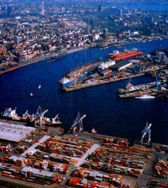 汉堡港也是目前世界上最大的集装箱港口之一,有18个集装箱码头,22台集装箱起重机,年集装箱装卸量125万标准箱。