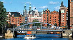 汉堡仓库城位于泰希托哈伦和鲍曼瓦尔之间的桑托凯一带是免税的自由港区,这一带是红砖建筑物的天下,著名的汉堡景点之一——仓库城就坐落在这里。这个建于19世纪末的建筑群是世界上最大最古老的仓库建筑群,其面积为30万平方米。为完成这个大规模工程,仅建筑师、工程师就达70名,他们戴月披星、寒来暑往奋战在工地上。仓库城一向被视为自由港汉堡和德意志帝国统一的标志。