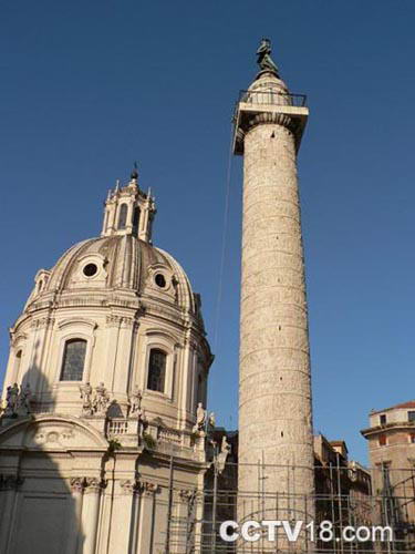 图拉真广场(Foro Traiano)建于公元107年,是为了纪念图拉真大帝远征罗马尼亚获胜。两所巨大的图书馆、两座宏伟的大会堂、至今还耸立在废墟上的图拉真胜利纪念柱(Traiano Colonna)和一排排雕像构成了当时全城最壮观的地区。