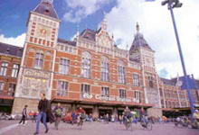 火车站是这座城市的中心,每天有1400多趟的火车抵达或离开这里。从这里出发,人们可以乘“Thalys”号花5个小时抵达巴黎,也可以乘EC城际快车前往科隆。阿姆斯特丹火车总站还是朋友碰头和购物的好地方,在这里可以睡觉,和几个人同抽一支烟,或者就那么漫无目的的随便走走坐坐。