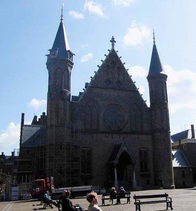 国会大厦(Binnenhof)是市区里最引人流连的地点。[Binnenhof]在荷语中是内院之意,访客得穿过这座荷兰古堡外院的大门,才能进入国会大厦的内院中,这座内院本来是伯爵古堡的庭院,置身其中,完全感受不到一丝丝国会建筑的肃穆,倒让人感觉象是参观历史悠久古堡那般庄严,这一点,正是海牙结合古典与现代的代表手法之一。