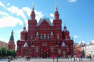 国家历史博物馆是莫斯科最古老的博物馆之一,建于1872-1883年。十年后,这家博物馆加建了一座俄式阁楼状的顶楼,上面建有几座小型古塔楼及其他一些装饰物。现在每个小型古塔楼楼顶上都有俄罗斯的国徽标志----双头鹰。这些都为大楼增添了俄罗斯民族色彩,成为该博物馆的显著标志。