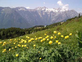 在每年放牧季节开始和结束之时,当地牧民都会举行特别的庆祝仪式。他们把自制的奶酪刻上标记分赠亲朋好友。放牧时节,叮铛悦耳的牛铃声为宁静的牧场平添了几分生气。为了保护牧场的生态平衡,放养牛羊的数量受到严格的限制。生活在这片纯净土地上的牛羊,自然会产出鲜美的肉质和香醇的奶制品。它们的粪便又成了滋养草场的天然肥料。年复一年,枯草上面又长出鲜嫩的青草,踩上去是极柔软厚实的感觉。烂漫的山花也是开了一茬又一茬,许多植物是阿尔卑斯山区独有的珍稀品种。这里出产的阿尔卑斯蜂蜜有着独特的保健功能。