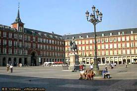 这个广场是菲里普三世在1619年主持修建的,有着独特风格的四方形广场。横向128米,纵向94米,由4层高的建筑围成。在广场中央是菲里普三世的骑马雕像。在建成之后的漫长岁月里经历了3次火灾,又重新修建,直至1953年完成后形成现在我们所看到的样子。以前在周围住户的阳台上经常可以看到奢华的皇家仪式、斗牛以及种种纪念活动,甚至是宗教裁判所施行的火刑现场的这座广场上,现在回荡的是抱着廉价吉他的年轻人们的嘹亮歌声。