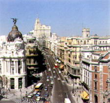 格兰维亚大道是马德里的主要交通干道,于1952年建设完成。该大道上多为一些搀有欧洲及美洲风格的西班牙传统建筑,它们都有着华丽的外观、雄伟的柱廊及临街的阳台。这条街上较为著名的建筑物有都会大楼、雪茄博物馆、加里西亚斗牛士小礼拜堂等。特别值得一提的是西班牙国家电信总局,它是由美国设计师韦克司在1929年完成的,是马德里的第一座摩天大楼。