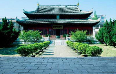 文庙建筑群以大成殿为中心,以南北中心线为对称轴。主要建筑有门楼、宫墙、泮池、泮桥(又名状元桥)、大成门、崇圣祠、土神祠、东西长庑等。占地总面积达3200平方米。主次建筑,错落有致,浑然一体,好似一组凝固的优美乐章。门楼正鎏金“文庙”二字,系赵朴初先生题书。