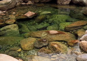 石刻面积为0.2平方米,因风雨剥蚀,现存三十字。这一宋代石刻,至今已有八百九十余年。前瀑西南崖壁上,刻竖行楷书“披雪崖”三字,石刻面积为0.03平方米。后瀑北面崖壁上,刻隶书“崩雪”二字,每字面积为0.25平方米。此两处石刻,风格古朴,未署年代和作者姓名。