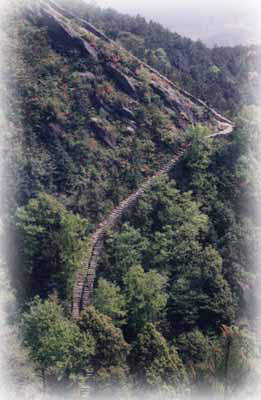 游览白崖寨,可从白崖寨山南坡攀登,沿着陡峭的石阶曲折而上,过“关门石”,就到了山寨南门“攀龙门”下。这里双峰对峙,高大的石城墙锁住了谷口,城门洞仅能容一人一骑通过。进入寨内,峰回路转,山坡上翠竹成林。