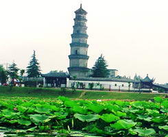 文峰塔位于阜阳城中心干道颍州路附近。近史志记载,因奎星楼不高,文星不太显露,所以当地文风不振,功名不多。康熙三十五年(1796年)于此建文峰塔,以振兴阜阳文风。塔为全砖结构,七层八边形,高31.8米。各层有塔心室,一层独为一室,北门为阶梯入口,有盘旋梯道贯顶。一、三、五、七层四方有四券形门;二、四、六层,在南、西、东三面各有三门。塔为密檐楼阁式,每层叠涩出桅,有仿木结构的砖雕斗拱支承挑出的密檐。顶部起脊挑角,三叠珠式宝剑,由铁制五叉刹杆贯串攒尖,造型朴素庄严。