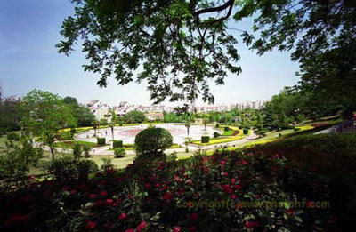 回首望西,红色为主调的别墅群,掩映在绿树繁花之中,潭边间隔而建了数座悬亭,白色的亭子、绿色的顶,与秀美的建筑形成了极为和谐的呼应,“莱茵河畔”的栈桥,浅浅地伸进潭里,营造着温馨、浪漫的情调;四周的高大建筑物似乎就是琥珀潭的陪衬。漫步在斗折蛇行的林间卵石小径,聆听啾啾的鸟鸣声,呼吸着清新的空气,贪婪地嗅闻花的味道,真是说不出的愉悦;潭中的泳者搅开了一潭绿水,划出层层涟漪,顿时让琥珀潭鲜活、灵动起来,还有那鸭子,欢快地在水中游弋着;假山、石壁、悬亭、水上舞台和曲桥、小亭、喷泉广场、花坛把个琥珀打扮的分外妩媚、妖娆.....。