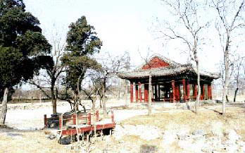 团河行宫建于清乾隆四十二年(公元1777年),有璇源堂、涵道斋、归云岫等八景,史称“团河八景”。1900年被八国联军破坏,宫中珍宝被洗劫一空。1984年修复。东湖中岛两侧分架精巧的木桥。岛上有翠润轩,又名敞宇,三楹,为大式卷棚歇山筒瓦顶,梁枋上绘有苏式彩画。西湖上有御碑亭,方形,四檐吻兽相衔,彩画夺目。亭内有乾隆题诗碑。