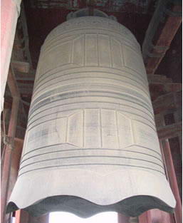 钟楼报时器具,原为铁钟,铸造于明永乐十八年(1420),高约4.2米、直径2.4米、体厚0.17米,重约25吨,曾悬挂在钟楼上,后因其声音不够洪亮,被后铸铜钟替换下来,将其放置于墙外,1983年移置于北京大钟寺古钟博物馆内保存。现所悬铜钟明永乐年间铸于铸钟厂,钟体通高5.4米,直径3.4米,体厚O.27米,重约42吨,悬挂在钟楼二楼正中的八角形木框架上,两侧各吊一根2米长的圆木,以供撞钟之用。钟体全部由响铜铸成,撞击时,声音纯厚绵长、圆润洪亮,京城内外方圆十数里均可听到。