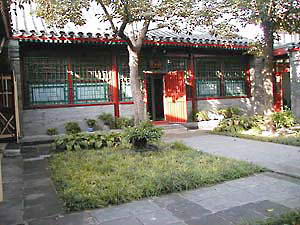 “丹柿小院”是1950年老舍旅美回国后购置的,这是一座北京旧式小院,小小的黑门坐西朝东,进门为一小院,只有两间南房。向西是一座三合院,这是故居的主要部分:东西各有三间厢房,现辟为展室,从第一篇小说《小铃儿》到最后一部未完成的自传体小说《正红旗下》老舍先生各个时期不同版本的作品荟萃其间,再现了先生一生的创作成就。北房三间,左右各一间耳房,现为原状陈列,展示了先生当年的生活原貌。明间和西次间为客厅,在这不大的客厅里,曾聚会过很多文化名人,周总理也曾三次到此做客,就坐在靠西边的沙发上,与先生亲切交谈。东次间为卧室。西耳房即为老舍的书房兼工作室,书房小而朴素,硬木镶大理石书桌上至今还摆放着老舍喜爱的几件文玩:一枚齐白石为他刻的印章,一只冯玉祥将军赠他的玉石印泥盒,一方清代“笠翁李渔书画砚”。就是在这间小屋里,从1950年到1966年的16年中,老舍写下了《龙须沟》、《茶馆》和大量曲艺、杂文、论文、诗歌、散文。