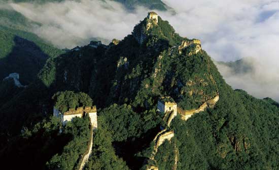 在慕田峪长城以西10公里,箭扣的走势比司马台更加富于变化和韵律;山势比慕田峪雄奇峻峭;构造墙体的是大块的白云岩,非常醒目。