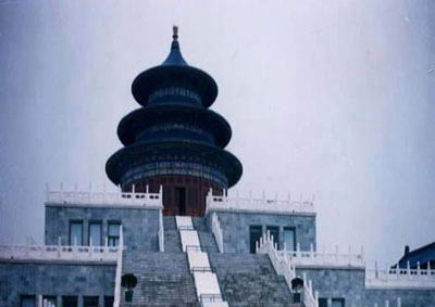 穿过富丽堂皇的牌楼,经过挺拔的华表、威武的石狮和洁白的金水桥,即抵达气宇非凡的仿天坛祈年殿设计的俱乐部会馆。在三层汉白玉栏杆围成的坛面中央,崛起高耸入云的回归殿,其直径为天坛祈年殿的三分之二,殿高31.8米,底座12米。在孔雀兰琉璃瓦的三重檐上,一人多高的世巨大金顶光彩夺目,大殿内金碧辉煌,天花、藻井、斗拱、柁梁的青绿金线彩绘均由名家指导手绘,巨幅壁画"清明上河图"栩栩如生,令人顿足忘近。八根高大雄伟的圆柱,红底之上金龙缠绕,庄严、富丽、华贵之至,完全再现了天坛祈年殿的雄姿与神韵。