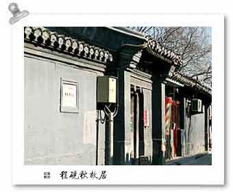 清光绪二十九年农历癸卯十一月十四日(1904年1月1日)酉时,一代宗师程砚秋诞生于京城什刹海地区小翔凤胡同(乾隆年问曾名小墙缝胡同)。5岁时,随母迁出祖宅,移居海淀小营暂住。6岁迁至前门外西晓市街北侧西弯尺(后并入苏家坡胡同),后立字八年从荣蝶仙学艺。15岁移至北芦草园9号,与当时在此居住的梅兰芳为邻。19岁经梅氏夫妇撮合,程砚秋与果素瑛于1923年4月26日于“同兴堂”饭庄举行结婚典礼,是日,程氏夫妇同其母进住前门西河沿23号(今36号)新居。24岁移居草帽胡同(后并入西草市东街)6号。25岁迁居内城高碑胡同5号。27岁移至灵境胡同东口内北侧兴平巷(今并入互助巷)6号。次年迁出暂住崇文门内七贤里(今并入苏州胡同)。30岁移居东单西观音寺(现建国门内大街)34号。31岁又迁居东四北大街什锦花园6号,该宅第为三进院落,仅租花园院为寓。1938年冬,举家乔迁西四北报子胡同18号(今西四北三条39号),该宅院为新购置的自产房,共有四层院落。1984年定为北京市文物保护单位,大门外挂有"程砚秋故居"文物保护牌,今程门后裔仍居此宅。
