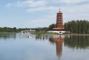 宝塔座落于延庆县南侧妫河之岸,三面环水,碧波荡漾,青松翠柏,绿树环气抱,登塔远望,大自然尽收眼底,环境十分优美。宝塔八边型,为九层柱廊式仿古宝塔,建筑面积1984.9平米。