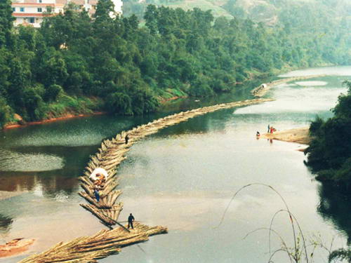 这是一幅多么古朴自然的水墨画哟?在一层层青石垒砌的河街堡坎上,悠然排列着一长溜木板青瓦吊脚楼房,自然蜿蜒而下,高低错落有致,像蛰伏着的长龙,安恬地卧于青山绿水怀中。而紧傍着老街的笋溪河水,清澈静幽,舒缓流淌,涟漪微漾,给这古色古香的境界凭添了几多画意诗情。