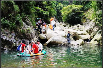 景区总体是一条可用于探险的狭长而崎岖陡峭的幽深峡谷,约3公里长,沿途布满各种奇石怪石,令人惊叹!中间有几个舟渡的大小绿潭,是旅游探险的必经之处。峡谷悬泉似练,清潺如歌。景区内还留有10余处佛道教、历代兵家人文景观,历史悠久,并留下许多优美传说和动人的民间故事。