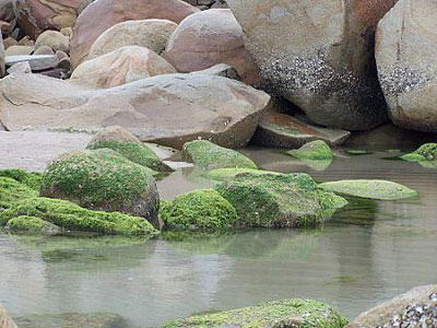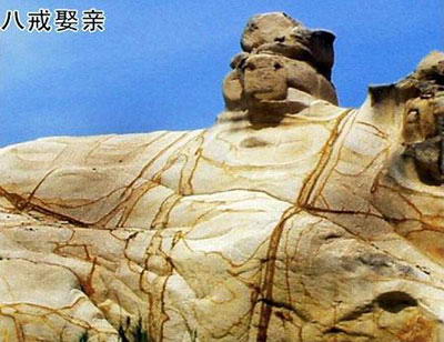 就在这“画卷”放直的地方,就在这神奇的山坡上,有着与“画卷创作”同具久远代的、一大批精雕细凿的艺术精品。它们的真正的归宿,古代应是在帝王家竹御花园;今天或许应在大城市的游园花圃。可它们哪儿也不去,就在这滨海的山坡上,日复一日、年复一年地静静数落着太阳与月亮的轮回,去实现自我的陪伴画卷的坚贞不渝的恋情。这里的“绵羊”在忧思,要是跳进台湾海峡能否游回来;这里的“鳄鱼”不下泥潭,却上山岗;这里的“王八”,千万年了,才敢伸出个头。这里的“天然动物”,正等着你去认识,去数数。