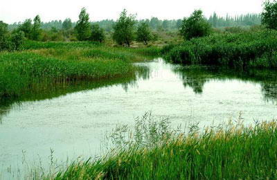 鸭鸣湖从源头向东南一路流淌,穿越无数沙丘和一个个小型湖泊、池塘,把一块块绿洲连成了一片。湖水时而湍急,时而平缓,回旋荡漾,穿梭在沙漠绿荫之间,湖面宽处数十米,窄处刚能容渔船和快艇通过。湖里各种自然生长的鱼类,自由游荡,深受垂钓者的青睐。湖的四周,芦苇丛生,野鸭成群,无论是盛夏季节还是隆冬,都在这里觅食居住,繁殖生息,给这片世外桃源增添了不尽的意趣。当地人平时约三五知己,或悠然垂钓,或湖上泛舟,或游泳、或品茶,总之,在鸭鸣湖休闲度假真是人生美事。