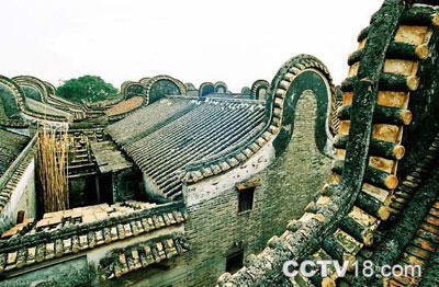 最突出的一座建筑是"振威将军家庙",主人是清代的一员武将。家庙前临半亩方塘,汇集整个村的地下水,取四水归塘之意。塘基砌以石坎,突出部分形如壶嘴,塘边建一个笔形古塔,名文塔。塔下有两方石,大者高3尺许,形如砚,小者方块状如印,形成一组"文房四宝"的景观。该村的建筑群密集而规整,内部布局是当地常见的三进深院落,外部以小巷分隔,纵横交错如棋盘。内巷均以条石铺砌,排水眼都统一凿成钱眼的模样,排水孔下连"渗井",泄入暗渠,流进池塘,地下排水系统相当合理。